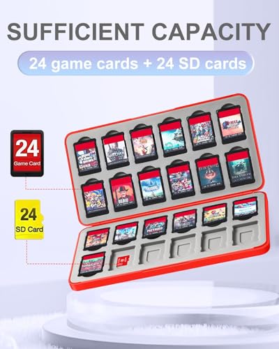 - 【سعة كبيرة - 24 فتحة】 يمكن لحافظة بطاقات الألعاب هذه تخزين جميع ألعاب سويتش المفضلة لديك في حافظة واحدة، تحمل ما يصل إلى 24 خرطوشة ألعاب سويتش و24 بطاقة مايكرو اس دي (باستثناء الألعاب).