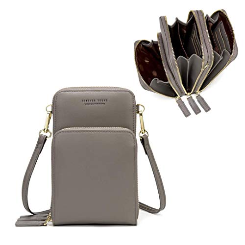 Y YONGYUAN - حقيبة كلاسيك كروس صغيرة الحجم للنساء لحفظ الموبايلات، محفظة كروس جلد صغيرة خفيفة الوزن، كروس للنساء، للكتف، رمادي، مقاس واحد, ① رمادي, One Size