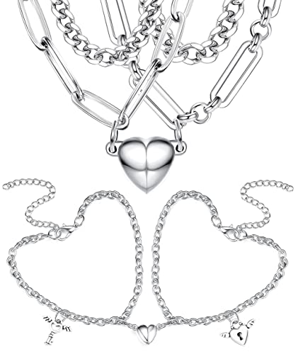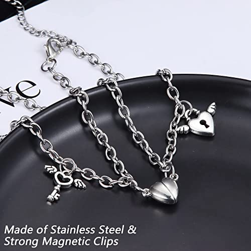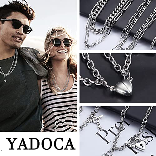 YADOCA - مجموعة سلاسل واساور بتصميم مغناطيسي من 4 قطع من يادوكا للازواج مصنوعة من الستانلس ستيل للاحباء