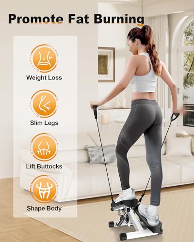 Yagud - آلة تمارين صغيرة، ستيبر للتمرين، ستيبر مع أشرطة مقاومة، آلة تمارين للمنزل والسلالم مع شاشة ليد، موفرة للمساحة، تدريب لكامل الجسم من ياجود