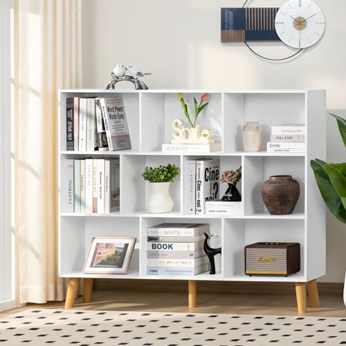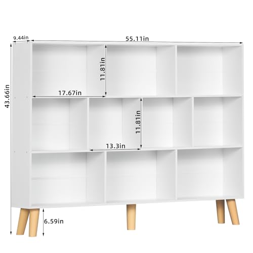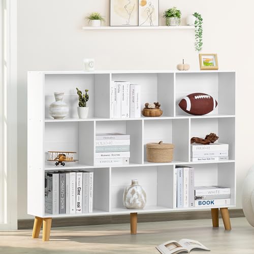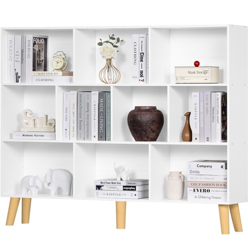 YAHARBO - ياهاربو رف كتب كبير مكون من 10 مكعبات، خزانة كتب من 3 طبقات مع ارجيل، ارفف كتب عصرية من منتصف القرن، رف منظم تخزين مفتوح قائم بذاته، خزانة كتب خشبية طويلة لغرفة المعيشة والمكتب، أبيض