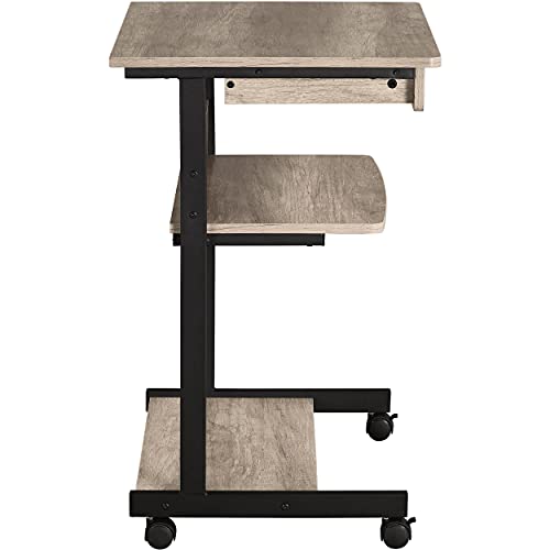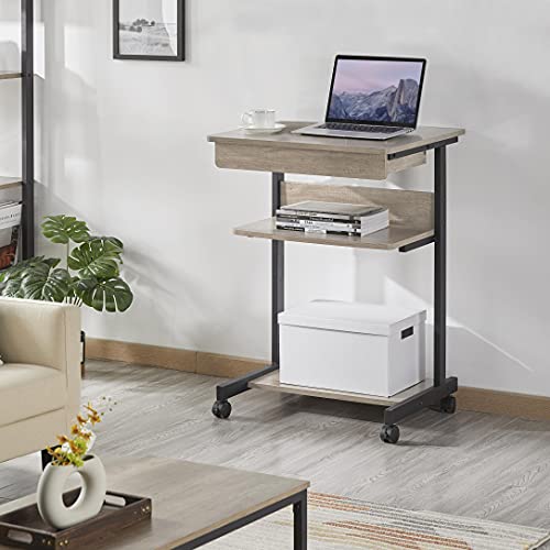 Yaheetech - طاولة كمبيوتر ولاب توب ومحطة عمل بعجلات من ياهي تيك مقاس 56 × 51 × 79 سم، لون رمادي مع درج واحد ورفين