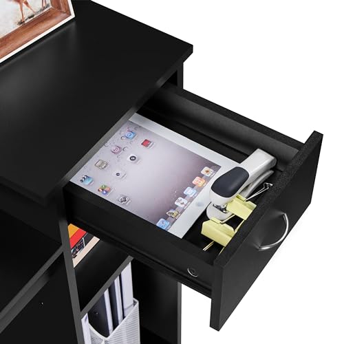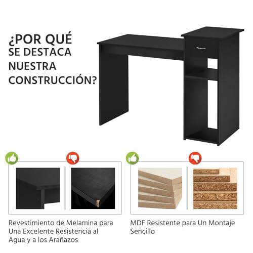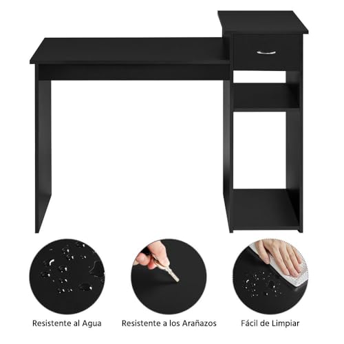 Yaheetech - ترابيزة كمبيوتر مع درج 107 × 50 82 سم مكتب للكمبيوتر بسعة تخزينية كبيرة رف بطراز عصري من ياهي تيك أسود لامع
