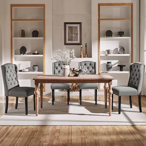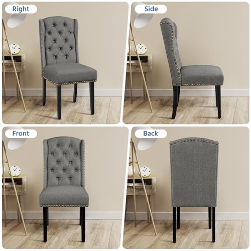 Yaheetech - مجموعة كراسي طعام منجدة من القماش من ياهيتيك، كراسي غرفة الطعام معقودة بأزرار مع أرجل خشبية وحواف برأس مسامير، رمادي فاتح، قطعتان