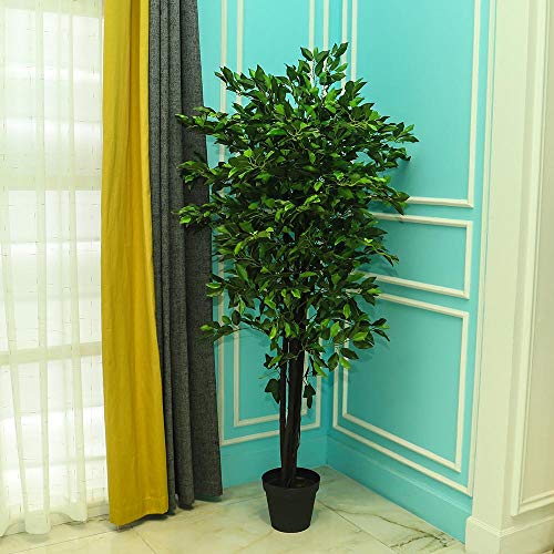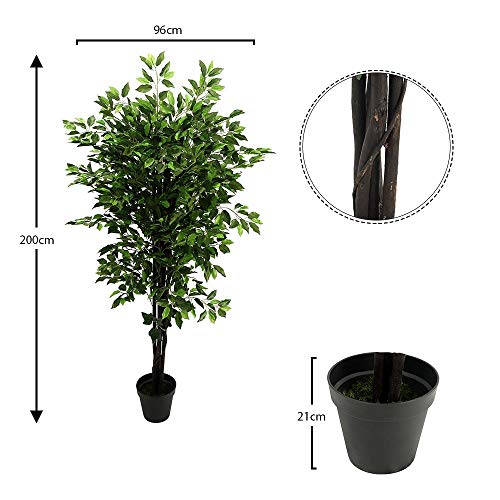 yh yahome - اشجار صناعية محاكاة لشجرة فيكس باوراق من الجلد الصناعي بطول 2 متر مع وعاء بلاستيك لتزيين المكتب وغرفة المعيشة والمنزل من ياهوم