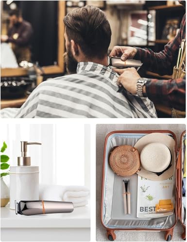 - 【قص سريع وسلس】تم تزويد ماكينة قص الشعر اللاسلكية بشفرات من الفولاذ المقاوم للصدأ مصقولة بدقة لقص الشعر الكثيف بسرعة ودون شد أو ألم. رأس القص المستدير على شكل حرف R مصمم ليناسب انحناءات رأس الإنسان، ويلامس البشرة بأمان، ويحمي فروة الرأس من أي إصابات. يمكن تعديل سرعتين، وبسرعة قصوى تصل إلى 8000 لفة/الدقيقة، مما يمنحك أفضل نتيجة تشذيب ناعمة وسلسة، ولا تصدر أي ضوضاء تقريبًا.
