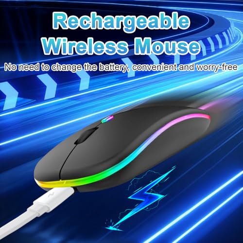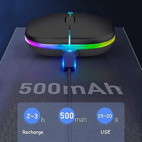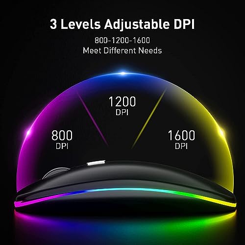Yakiter - ماوس العاب لاسلكي من ياكيتر، اضاءة LED رفيعة بوضع مزدوج (بلوتوث 5.1 + USB) 2.4GHz قابل لاعادة الشحن، ماوس لاسلكي بلوتوث صامت، ماوس كمبيوتر مع مستقبل USB (اسود)