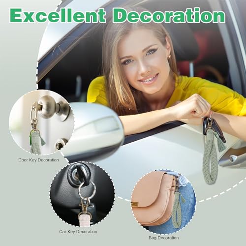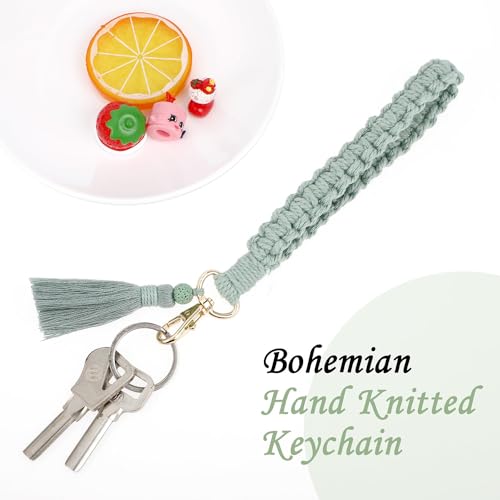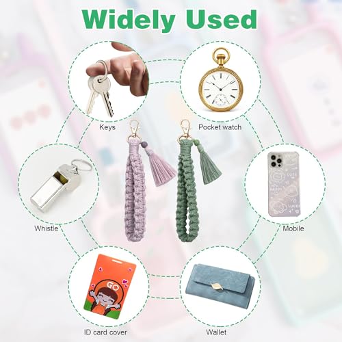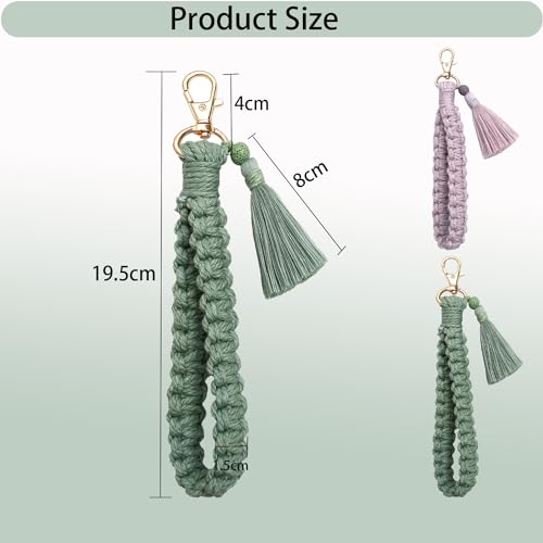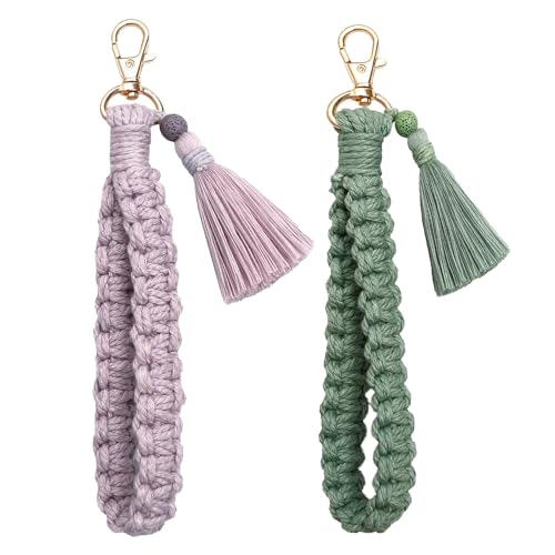 YaLiyA - سلسلة مفاتيح مكرامية من ياليا مكونة من قطعتين، سلسلة مفاتيح مكرمية بوهيمية، سلسلة مفاتيح مع شراشيب وحامل سلسلة مفاتيح للمعصم للنساء والفتيات