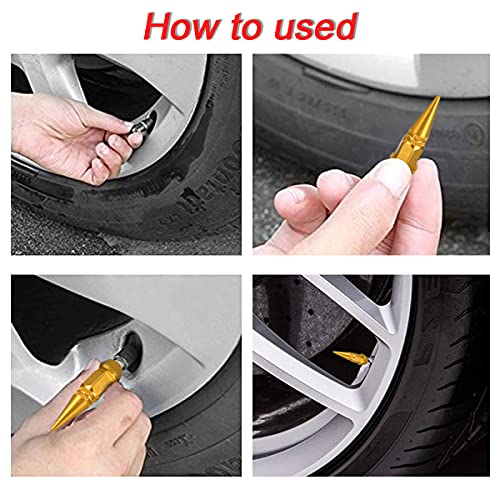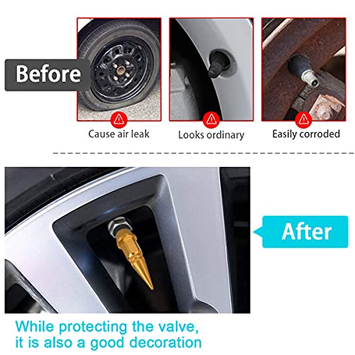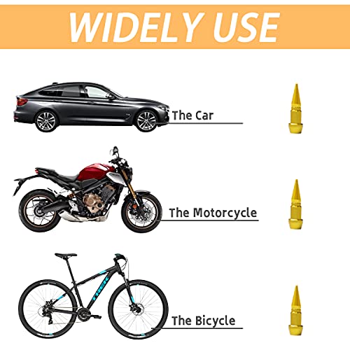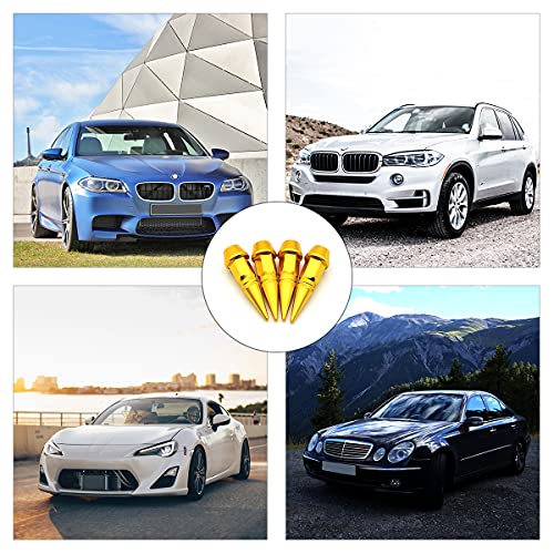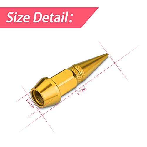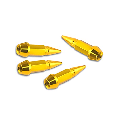 YALOK - أغطية صمام عجلة السيارات بتصميم مسنن من الألومنيوم، تصميم ملفت للانتباه مقاوم للغبار ومناسب لجميع السيارات، عبوة من 4 قطع (ذهبي)