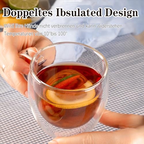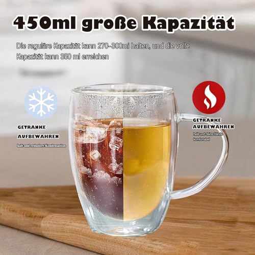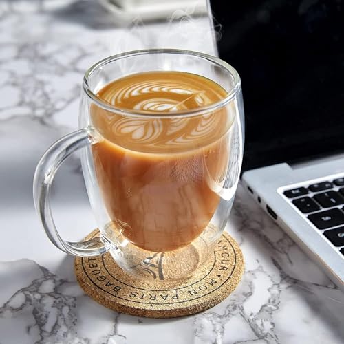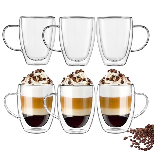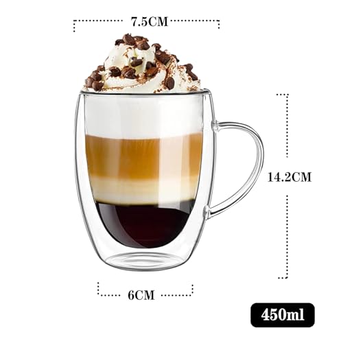YALYAYA - طقم أكواب لاتيه ماكياتو حرارية مزدوجة الجدران مصنوعة من زجاج البوروسيليكات، أكواب الكابتشينو والقهوة والشاي مع مقبض من ياليايا، 6 قطع سعة 450 مل