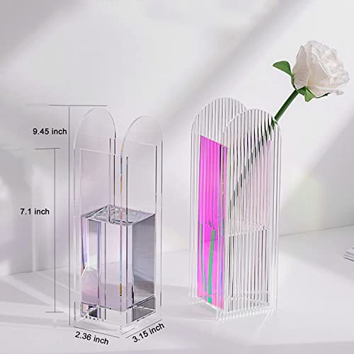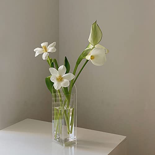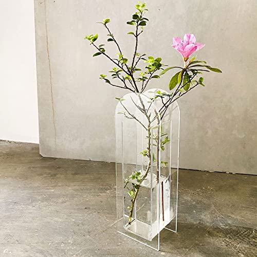 YalzoneMet - فازة أكريليك حديثة من يالزون بشكل قوس زهور هندسي فريد من نوعه لتزيين سطح المكتب، حاوية زهور للنباتات للمنزل والمكتب وحفلات الزفاف، 8 × 24 سم (شفافة)، W024