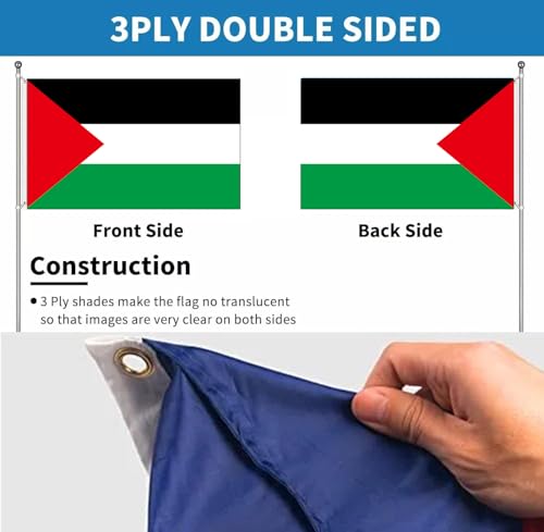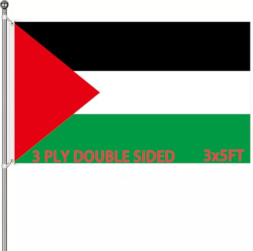 Yamizar - علم فلسطين شديد التحمل بوجهين من ياميزار، 3 طبقات دونالد 3 × 5 قدم، راية علم فلسطين للسيارة مع حلقات نحاسية، مقاومة للبهتان للمنزل، ديكور السكن الجامعي، خارجي، داخلي
