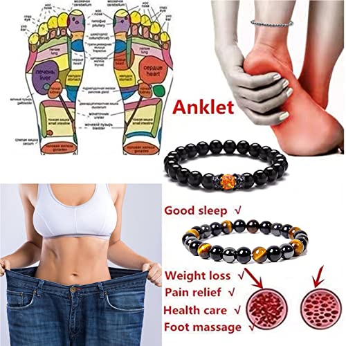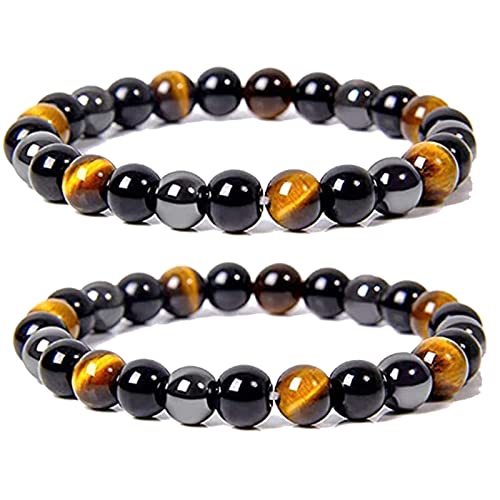 YANCHUN - سوار خرز من زجاج بركاني خلخال حجر عين النمر وحجر الدم للحماية الثلاثية للنساء والرجال لون اسود أخرى