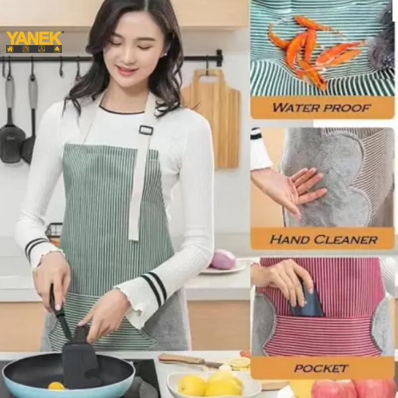 YANEK - YANEK Adjustable Kitchen Aprons 2 Side Coral Velvet Towels Stitched Bib Apron With Pockets Durable Unisex for Home Kitchen, BBQ Restaurant, Chef Apron, Cooking Apron, Baking Gardening