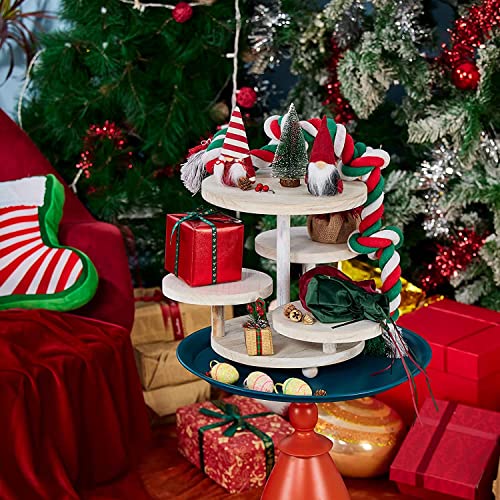 Yangbaga - يانج باغا حامل كب كيك دائري من 4 طبقات، حامل كيك خشبي مع صينية ديكور متعددة الطبقات لحفلات استقبال المولود واعياد الميلاد والزفاف والتخرج والهالوين والكريسماس