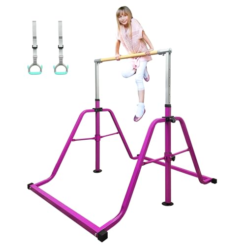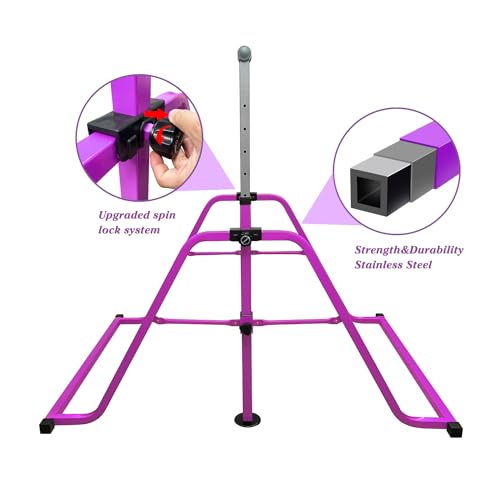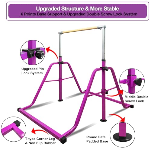 - 【ارتفاع قابل للتعديل】سيكبر بار الجمباز مع أطفالك. يمكن تعديله بسهولة لأعلى أو لأسفل في الارتفاع من 3 أقدام إلى 5 أقدام مع 12 مستوى، لتلبية الاحتياجات ومستويات المهارة المختلفة. مثالية للأطفال ولاعبي الجمباز الصغار.