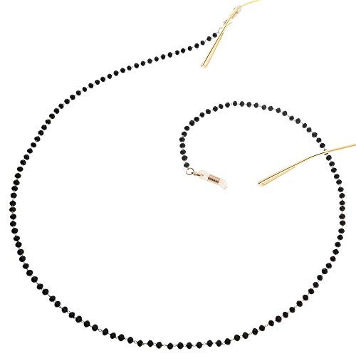YANJ - سلسلة نظارات للنساء، سلاسل نظارات سوداء كريستالية، حبال حامل النظارات، سلاسل نظارات وحبل تعليق (اللون: اسود، المقاس: 70 سم)