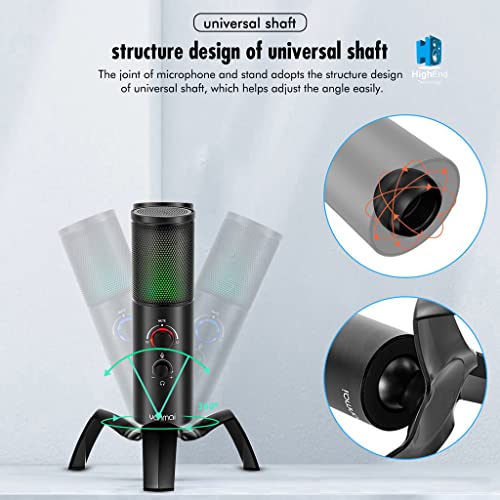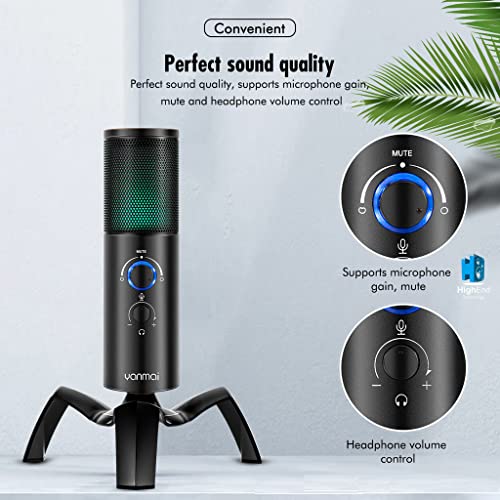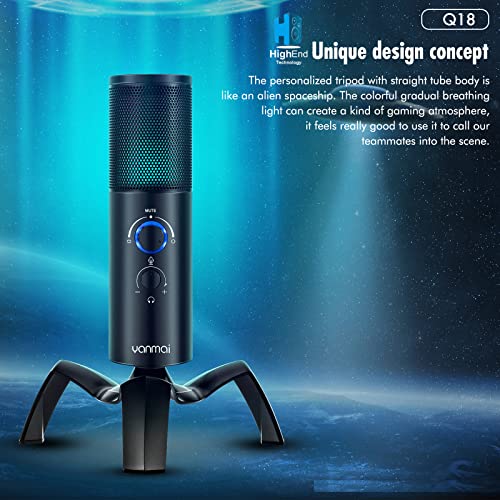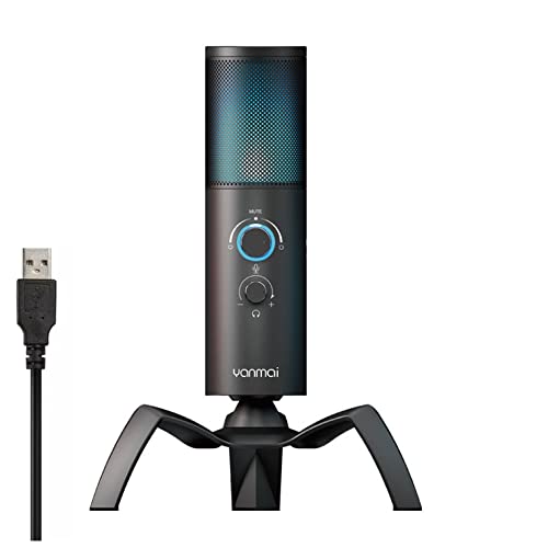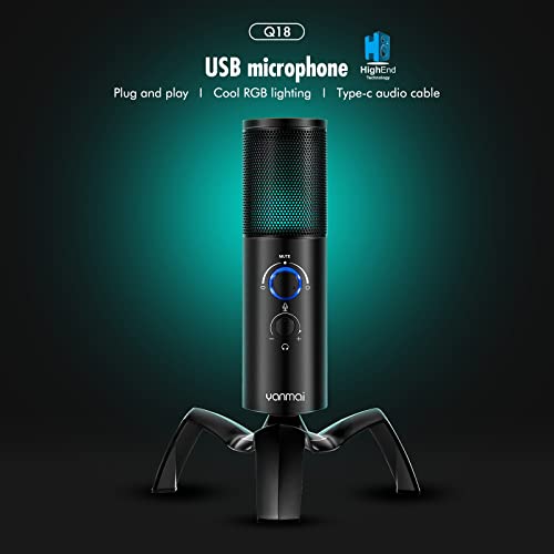Yanmai - ميكروفون مكثف للالعاب بمنفذ USB من الفضاء اللوني ار جي بي Q18، أسود