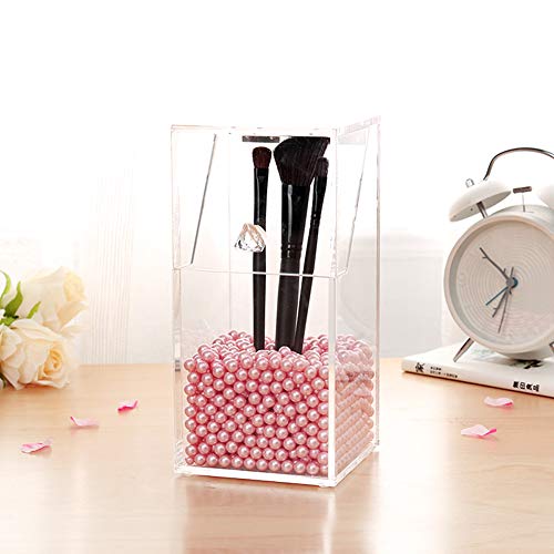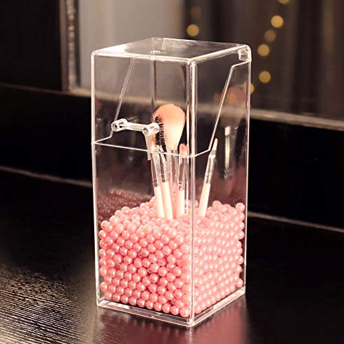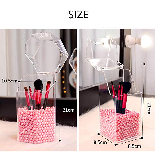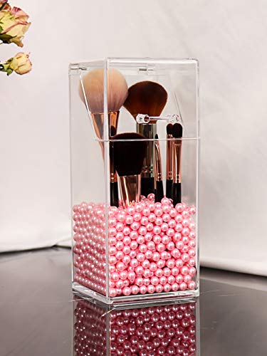 YANROO - حامل اكريليك لتنظيم فرش المكياج وتخزينها بغطاء مقاوم للغبار لترابيزة الزينة والحمامات مع لالىء بينك من يانرو