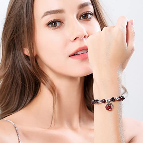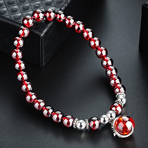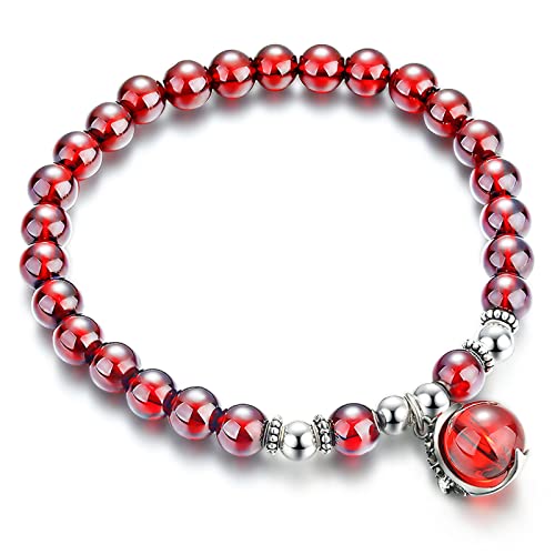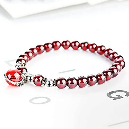 YANYUNZHUBAO - سوار كريستال من احجار العقيق بلون احمر واين مع فضة S925 دولفين بحجم 6-7 ملم، سوار احجار علاجية للنساء مثالية لزينة الكريسماس وكمجوهرات للفتيات, كريستال, كريستال