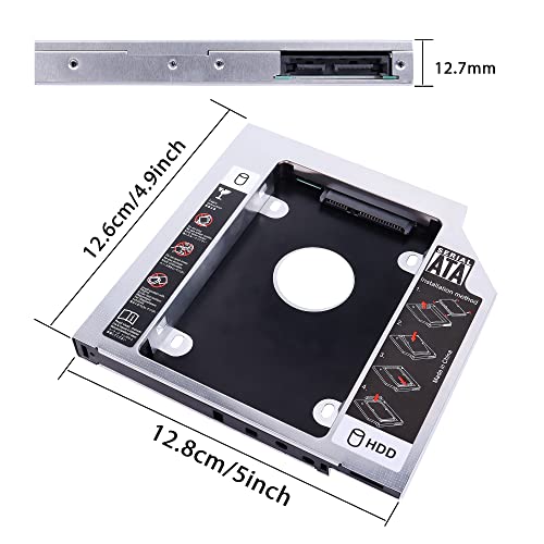 YAODHAOD - حامل محول القرص الصلب ساتا 2 وهارد SSD وهارد HDD، حاوية عالمية 12.7 ملم 6.3 سم حامل القرص الصلب للاب توب ساتا 3 للـ CD/DVD-ROM، علبة منفذ القرص الصلب سوبر درايف الضوئي من الألومنيوم (12.7 ملم)