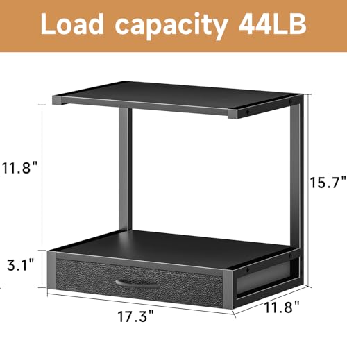 YAOHUOO - حامل طابعة مكتبي بطبقتين مع درج قماشي من ياوهوو، طاولة برتينر مع رف تخزين، منظم مكتب للمنزل والمكتب، طابعة ثلاثية الابعاد، الة فاكس، ماسحة ضوئية، 17.3 انش × 11.8 انش، اسود