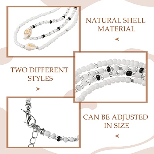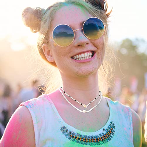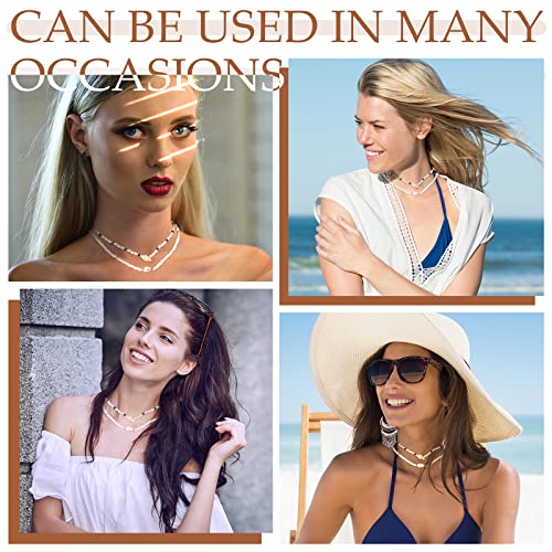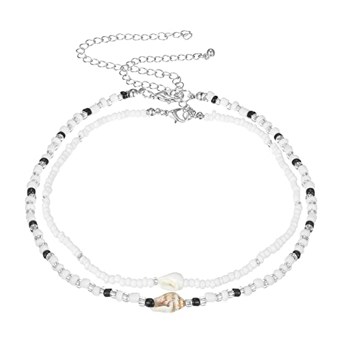 Yaomiao - سلسلة بدلاية بنمط بوهو مزدوجة الطبقات من الخرز والصدف مناسبة للصيف والشاطئ، سلاسل للنساء والبنات، 4 قطع