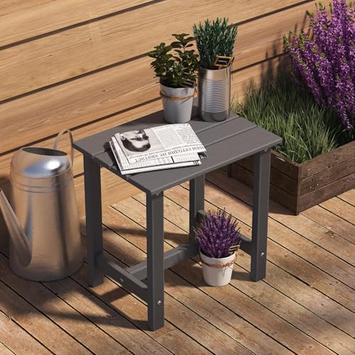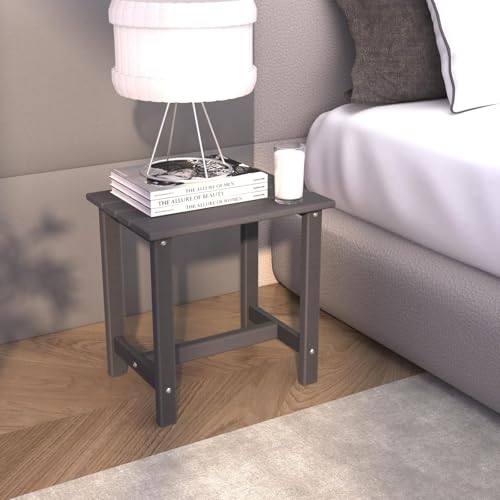 Yardgrace - طاولة جانبية خارجية اديرونداك من ياردجريس، مقاومة للطقس وسهلة الصيانة، طاولة جانبية للفناء الخلفي وحمام السباحة والشرفة، طاولة جانبية متينة وانيقة، طبقة واحدة، رمادي