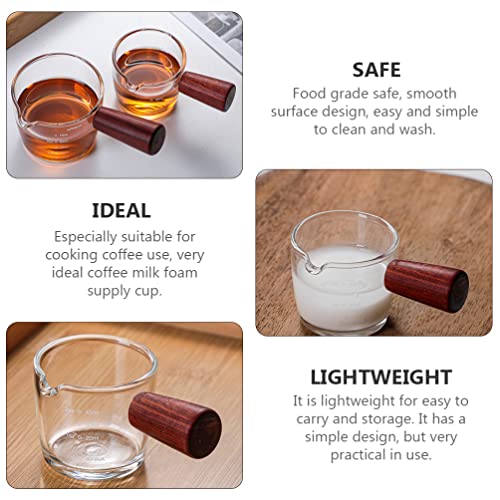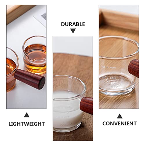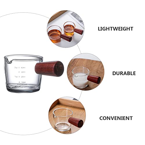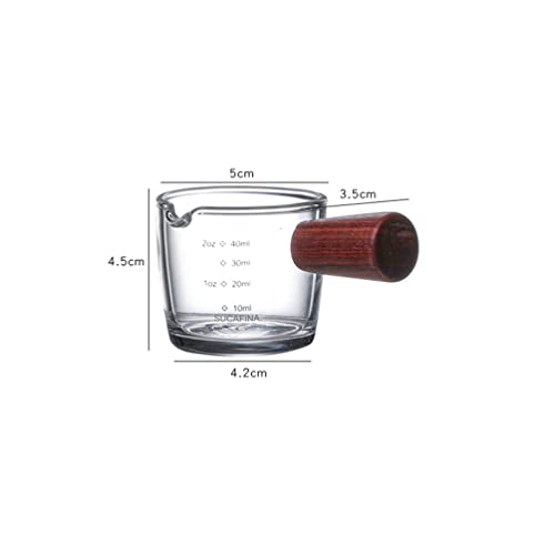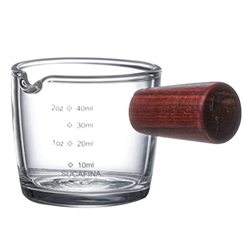Yardwe - كوب قهوة اسبريسو بفوهة واحدة مع مقبض خشبي، كوب قياس زجاجي صغير للحليب والقهوة والاسبريسو سعة 40 مل من يارودي