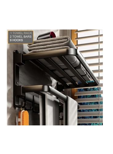 generic - حامل مناشف يثبت على الحائط بلون اسود غير لامع من ياري وايز بدون ثقب او براغي، حامل مناشف مزدوج 24 انش مع حامل مناشف للفنادق