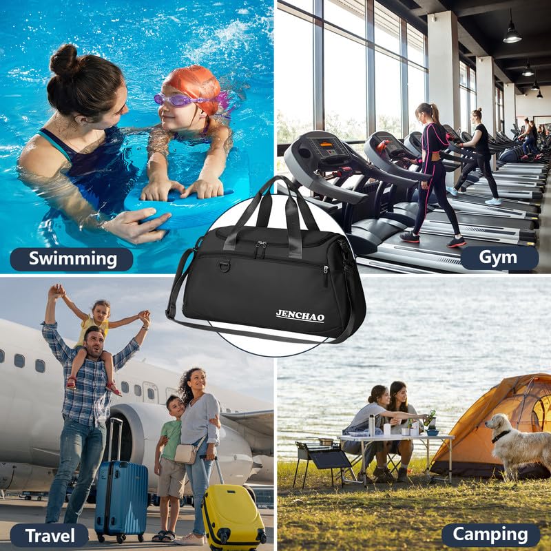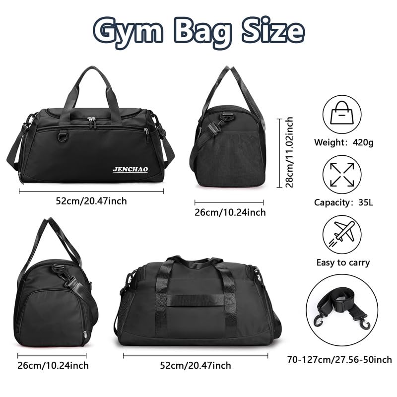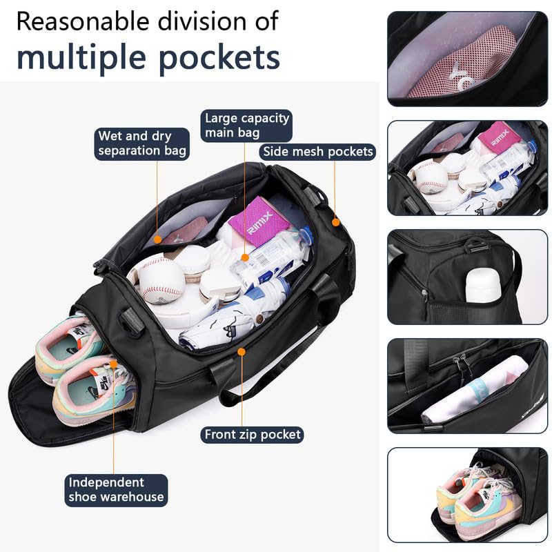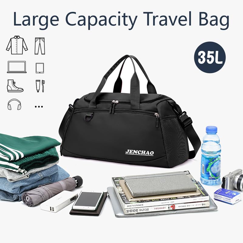 Yarmiene - شنطة سفر للنساء من يارمين رياضية للرجال بسعة 35 لتر كبيرة قابلة للطي لصالة الالعاب الرياضية مع جيب للاحذية وحجرة للملابس المبللة اسود مواد متعددة
