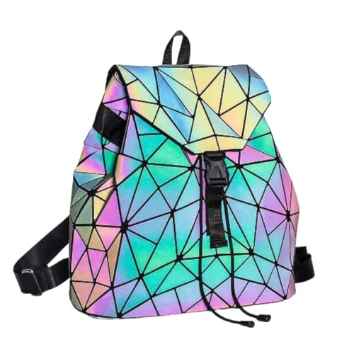 YASHODHARA ENTERPRISE - شنطة عصرية بتصميم هندسي هولوغرافي عاكس للضوء للبنات والنساء للكلية والمدرسة والمكتب من ياشودارا انتربرايز متعددة الالوان مقاس M