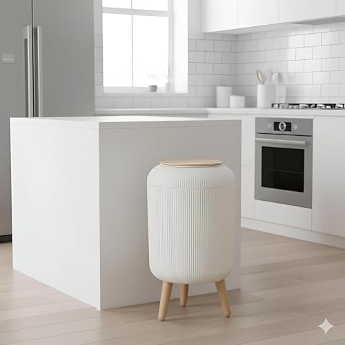 Generic - ياسكت سينسور - بلاستيك ابيض سعة 10 لتر مع متانة معززة، يتميز بغطاء خشبي انيق وارجل خشبية قوية، مثالي للمطبخ او الحمام لإضفاء لمسة لامعة وعصرية.