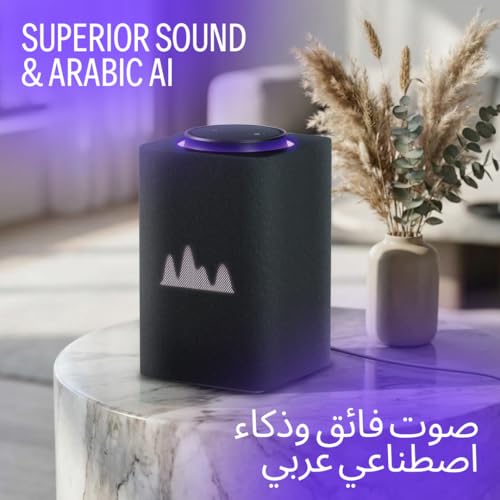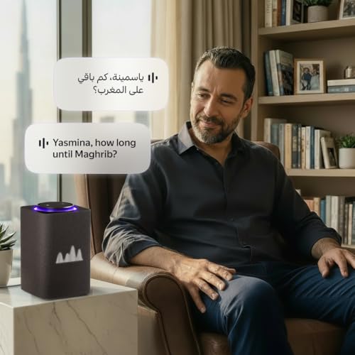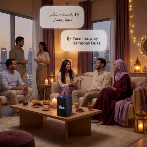Yasmina - مكبر صوت ذكي مع مساعد ذكاء اصطناعي يشبه الإنسان من ياسمينا| استخدم صوتك للتحكم في الأجهزة المنزلية الذكية عبر البلوتوث أو الواي فاي وتشغيل الموسيقى والقرآن (يتحدث العربية والانجليزية)|مقاس اقصى(أسود)