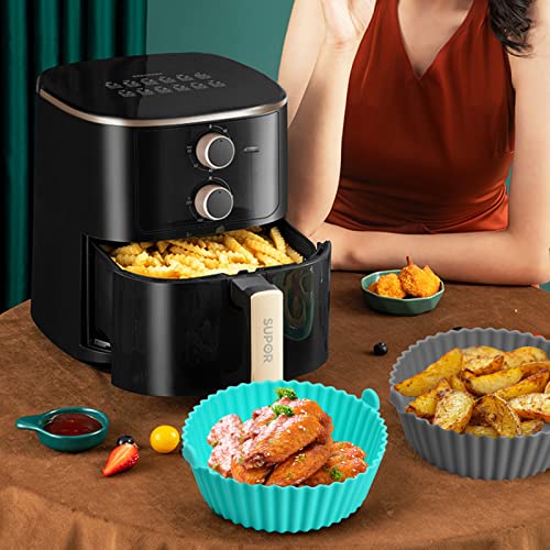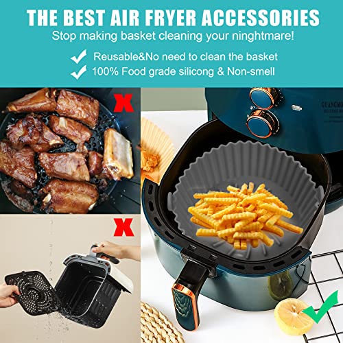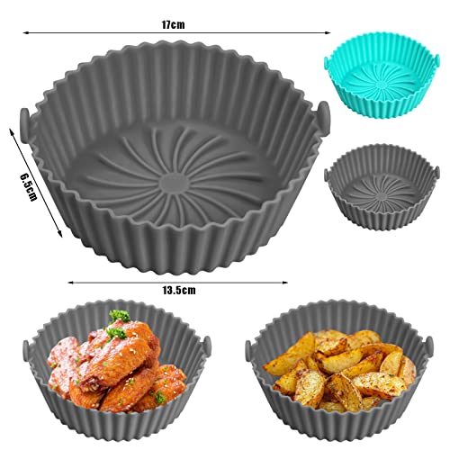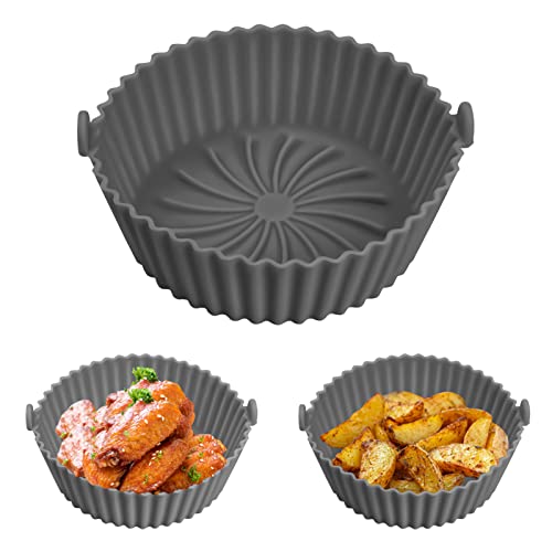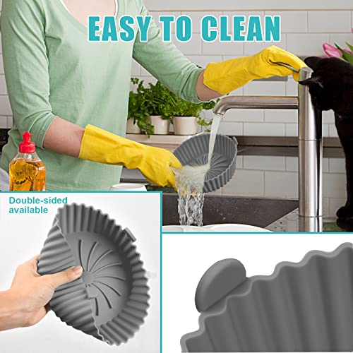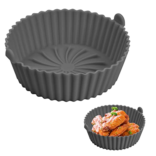 Yasmous - قوالب سيليكون للمقلاة الهوائية 16.00 سم قابلة لإعادة الاستخدام ومقاومة للحرارة دائرية غير لاصقة من السيليكون ملحقات مقلاة هوائية للمنزل والمطبخ والفرن والميكروويف رمادي ياسمووس