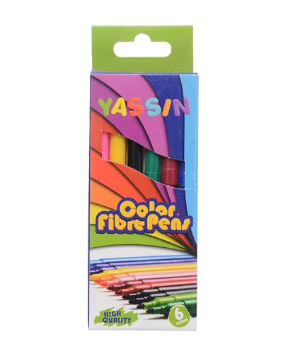 Yassin - الوان فلوماستر رفيعة من ياسين، 6 لون – متعددة الالوان