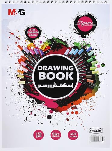 Yassin - دفتر رسم بالالوان مع ورق 1/8 بابعاد 35 × 25 سم من ياسين