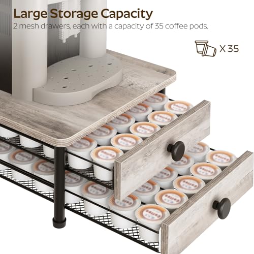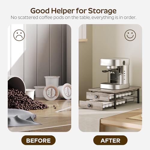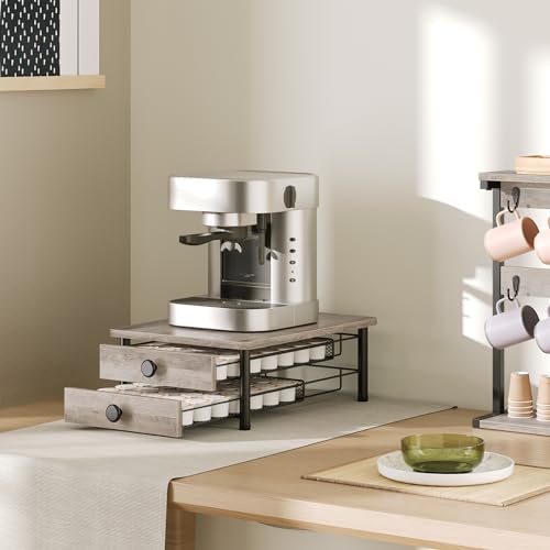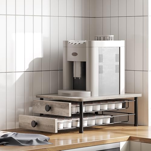 YATINEY - حامل درج لكبسولات القهوة من طبقتين من ياتيني، منظم تخزين كبسولات كبسولات لكوب كيه، سلة شبكية منزلقة، درج كبسولات القهوة المدمج للمطبخ المنزلي، لون رمادي، KH28BG