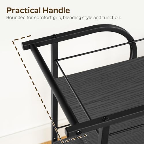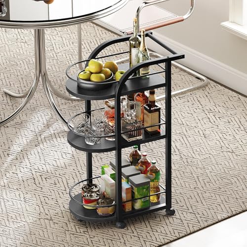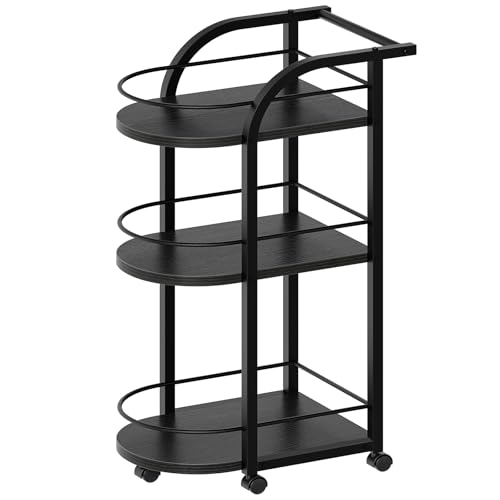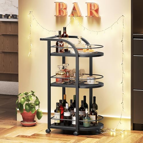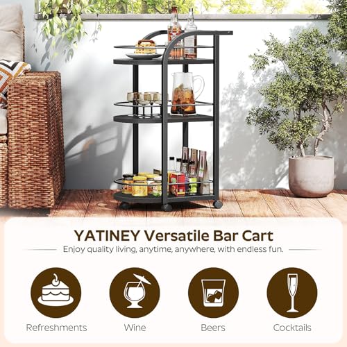 YATINEY - عربة بار من 3 طبقات من ياتيني، عربة تقديم منزلية مع سياج وعجلات لغرفة الطعام وغرفة المعيشة والحديقة والحفلات، لون أسود، موديل Bc06bb