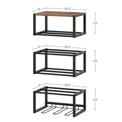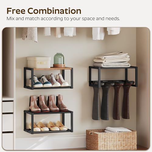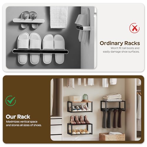 YATINEY - رف احذية يثبت على الحائط من 6 طبقات من ياتيني، منظم احذية للخزانة، يحمل 6-12 زوج، رف احذية عائم، 3 عبوات تخزين احذية معدنية، موفر للمساحة للمدخل، بني ريفي واسود SS01BR