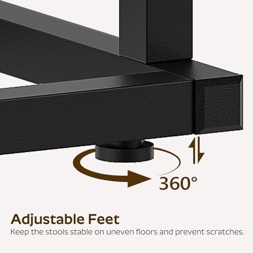 - مواد عالية الجودة لبناء قوي: مصنوعة من أنابيب معدنية سميكة ولوح حبيبي عالي الجودة، مجموعة كراسي البار قوية وتدوم طويلاً. يأتي كل كرسي بأربعة أقدام قابلة للتعديل لتسوية الأرضيات غير المستوية وحماية أرضيتك من الخدوش