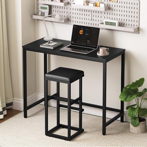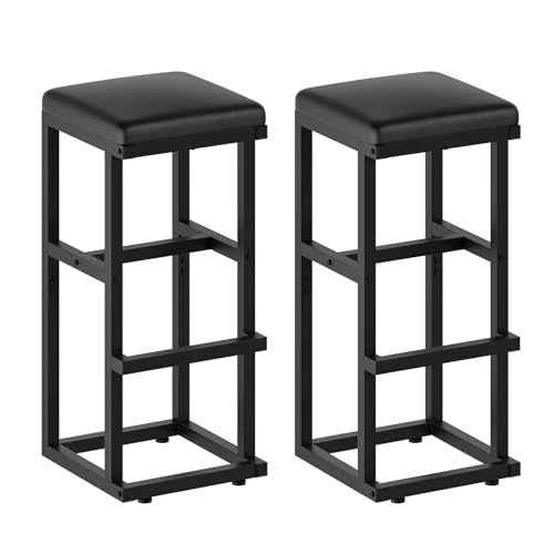 YATINEY - مجموعة مقاعد بار من ياتيني مكونة من قطعتين، كراسي بار مع تنجيد من البولي يوريثين، مقاعد مرتفعة مع مسند للقدمين، كراسي مطبخ لتناول الافطار وجزيرة المطبخ وغرفة الطعام والمقهى، اسود BY06L2BB