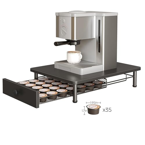 YATINEY - حامل درج لكبسولات القهوة من ياتيني، منظم تخزين كبسولات القهوة بسعة 35 قطعة، درج لتخزين اكواب القهوة، سلة شبكية منزلقة، للمنزل والمكتب والمطبخ، اسود KH08BK