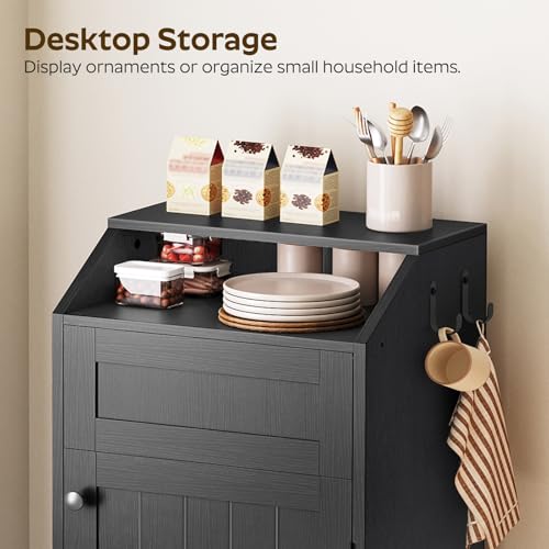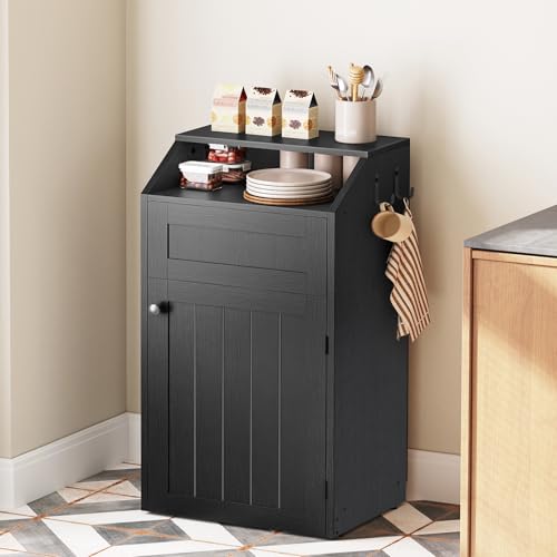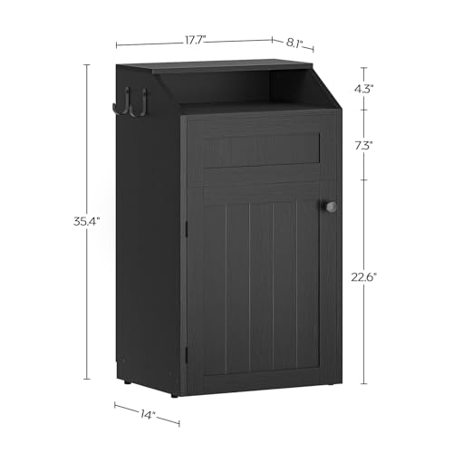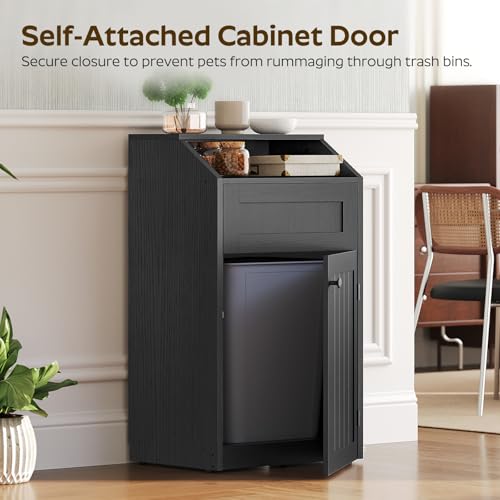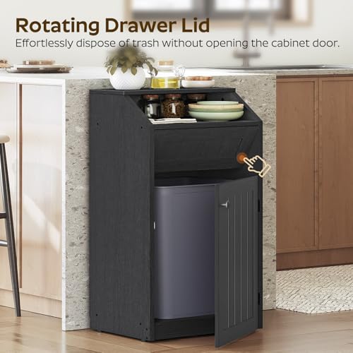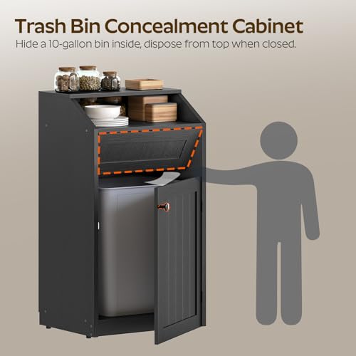 YATINEY - دولاب للقمامة قائم بذاته طراز WB01BB، تصميم بسلة مهملات من الخشب مخفية وقابلة لإعادة الاستخدام مع باب قلاب، مناسب للمطبخ ولغسيل الملابس من ياتيني، سعة 38 لتر، أسود