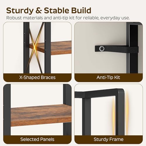 - هيكل قوي: مصنوع من خشب مضغوط عالي الجودة وإطار حديد معزز، يحافظ رف الكتب هذا على الثبات أثناء الاستخدام اليومي. توفر الأقواس المعدنية على شكل حرف X ومجموعة مضادة للانقلاب المتضمنة أمانًا إضافيًا للبيئات المنزلية