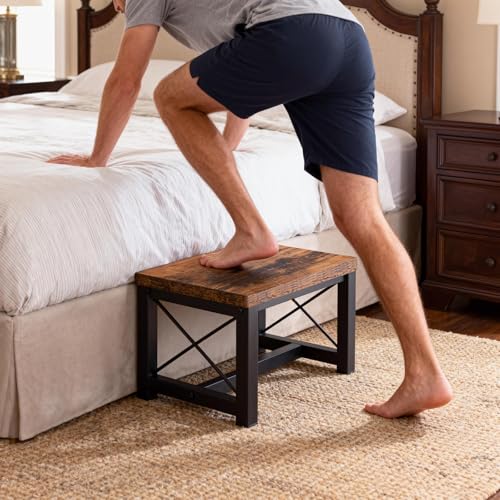 YATINEY - مقعد خشبي من ياتيني، كراسي سرير للاسرة العالية، مقعد شديد التحمل مع اقدام مطاطية غير قابلة للانزلاق، يستخدم لغرفة النوم وغرفة المعيشة والمطبخ والحمام، سهل التجميع، بني ريفي، JD01BR