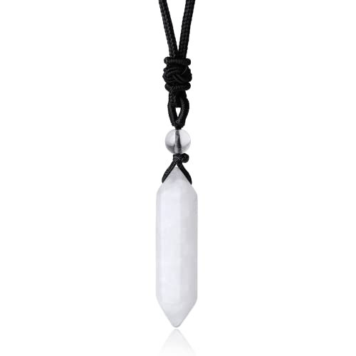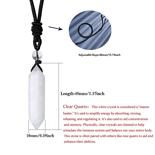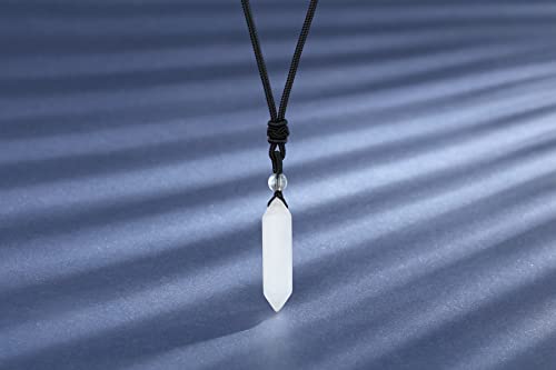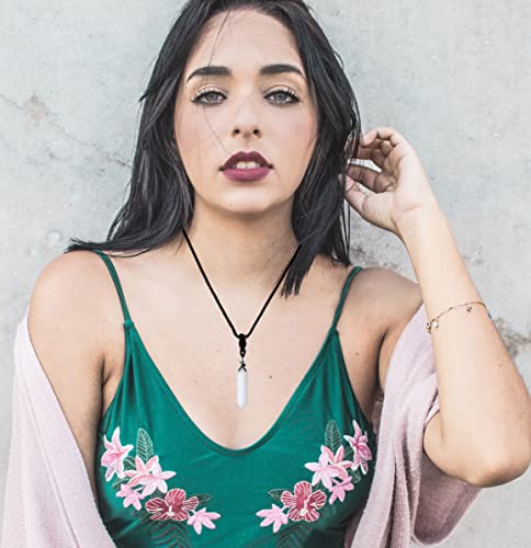 YATOJUZI - ياتوجوزد قلادة من حجر الكوارتز الشفاء الكريستالي سداسية مدببة بحبل قابل للتعديل الاحجار الكريمة الطبيعية مجوهرات كوارتز ريكي انجر للنساء والرجال