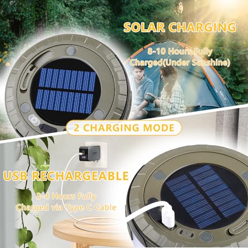 - 【يدعم الشحن بالطاقة الشمسية والـUSB】يمكن شحن سلسلة الليد عبر USB والطاقة الشمسية، وشحن البطارية عالية السعة 2000 مللي أمبير في الساعة في 3 ساعات فقط، وتضمن اللوحة الشمسية المدمجة الشحن عندما يكون هناك ضوء، مما يمنح إضاءة التخييم ضمانًا مضاعفًا. وهناك مؤشر طاقة لمنحك فكرة واضحة عن حالة الشحن.