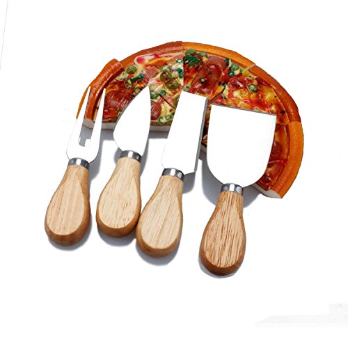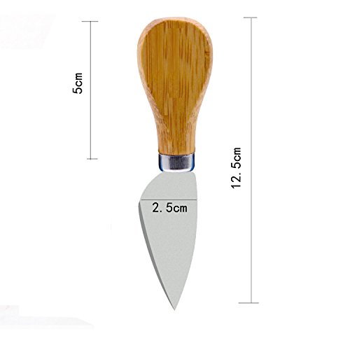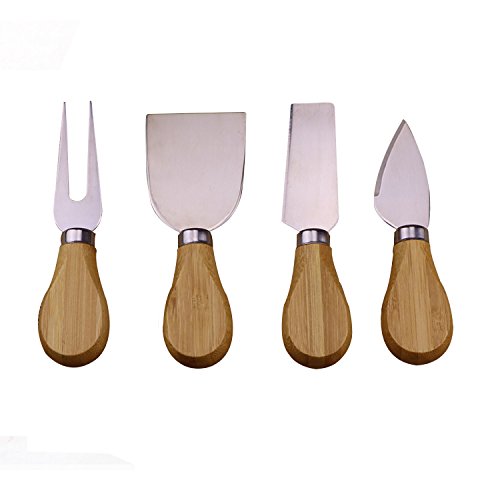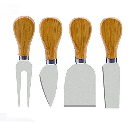 Spaceshoop - طقم سكاكين جبن للسفر من ياي، سكاكين بمقابض من خشب الخيزران وفولاذ مقاوم للصدأ، تضم قطاعة جبن، وسكين حلاقة، وشوكة، وأداة توزيع بمقابض خشبية، 4 قطعة