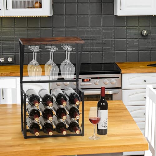 - 【تخزين النبيذ والزجاج】يمكن لرف النبيذ هذا تخزين ما يصل إلى 12 زجاجة نبيذ قياسية و6 أكواب نبيذ. تحافظ الأخاديد المعدنية على النبيذ مسطحًا مما يضمن نقعه في الفلين، مما يمنع التلوث ويسمح له بالتنفس أثناء تخميره في الزجاجة.